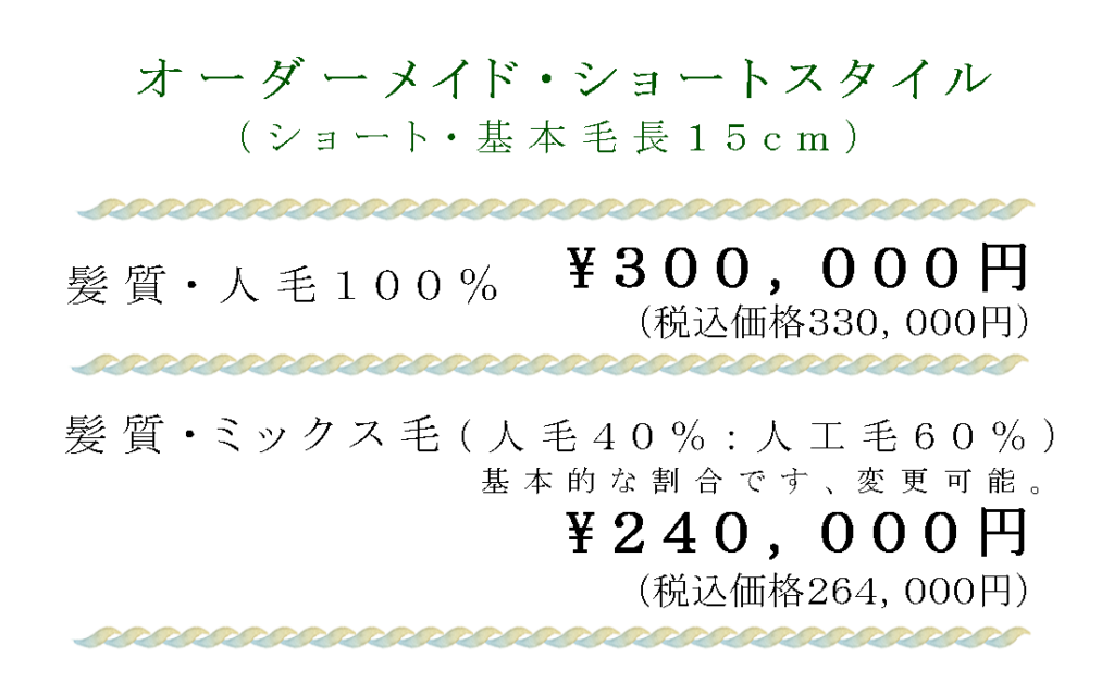 ※ウィッグ(かつら)料金は、上記以外掛かりません。