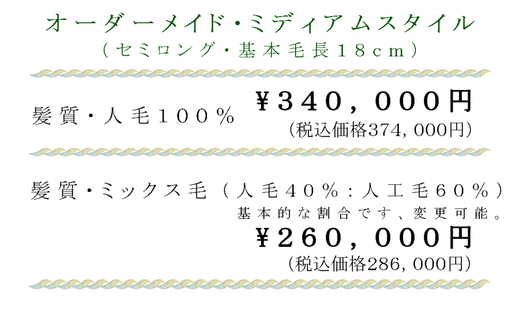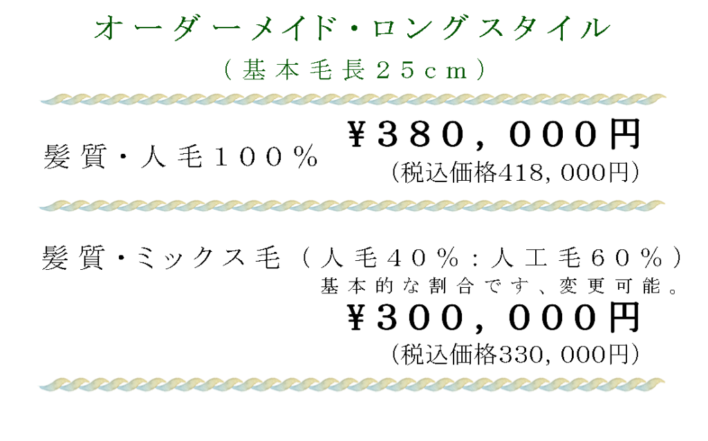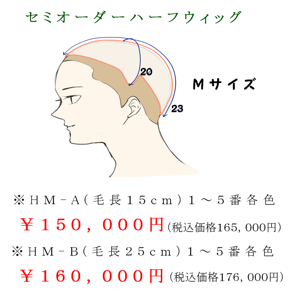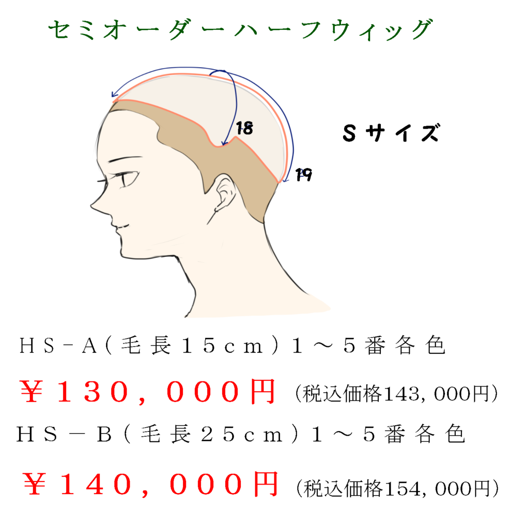 (ベースネットの大きさとウィッグ使用の毛材で価格が変わります。)